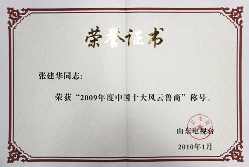 張董事長榮獲“2009年度中國十大風(fēng)云魯商”稱號(hào)