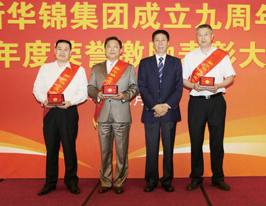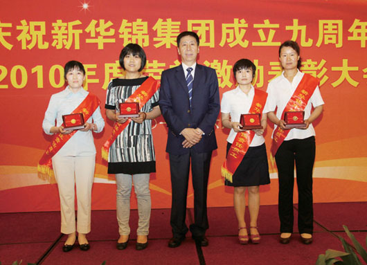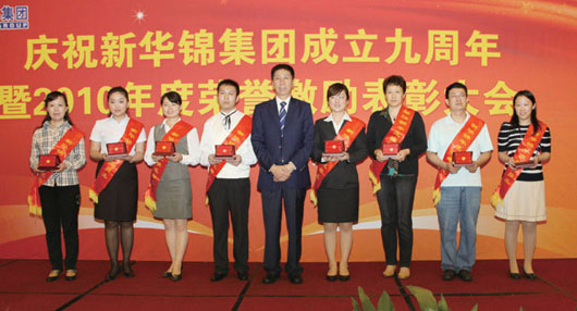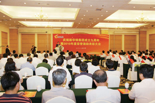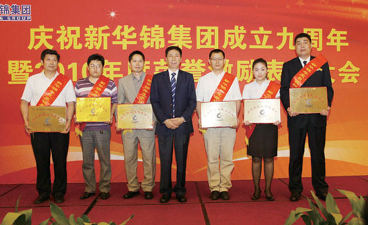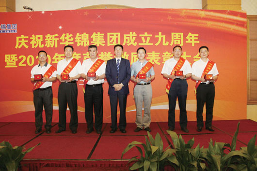在集團(tuán)成立九周年到來之際,為表彰先進(jìn)團(tuán)隊(duì)與個人,激勵干部員工干事創(chuàng)業(yè)的斗志,6月17日下午,集團(tuán)在麗晶大酒店國際會議中心召開慶祝集團(tuán)成立九周年暨2010年度榮譽(yù)激勵表彰大會,隆重表彰新華錦集團(tuán)山東海川工藝發(fā)制品有限公司業(yè)務(wù)三部等12個先進(jìn)團(tuán)隊(duì),劉曲鋒等33名先進(jìn)個人。集團(tuán)領(lǐng)導(dǎo)班子成員、總部全體員工、各成員單位領(lǐng)導(dǎo)班子成員、獲得2010年度榮譽(yù)激勵團(tuán)隊(duì)獎項(xiàng)的員工代表、獲得2010年度榮譽(yù)激勵個人獎項(xiàng)的員工及家屬代表近200人參加大會。