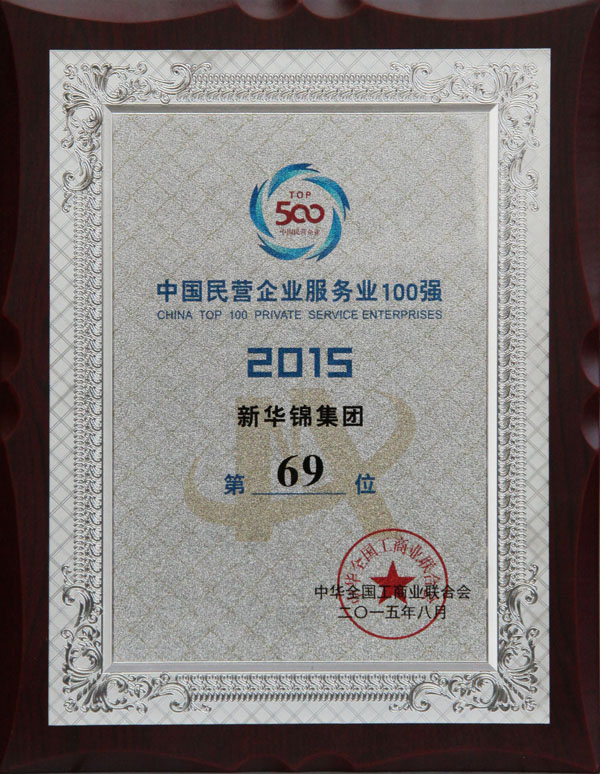 ? 2015年中國民營企業(yè)服務(wù)業(yè)100強排名69位 - 2015 - :: HIKING GROUP 新華錦首頁(國際貿(mào)易)(金融投資)(老年頤養(yǎng)) ::