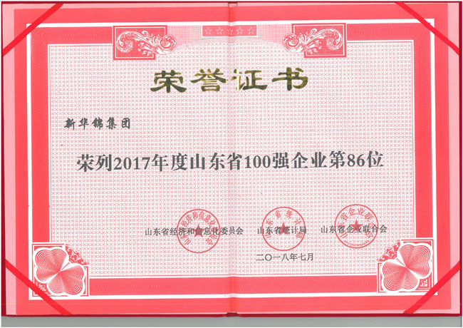 ? 2017年度山東省100強企業(yè)第86位 - 2017 - :: HIKING GROUP 新華錦首頁(國際貿易)(金融投資)(老年頤養(yǎng)) ::