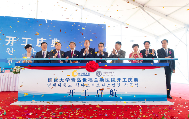 第八任聯(lián)合國(guó)秘書(shū)長(zhǎng)、博鰲亞洲論壇理事會(huì)理事長(zhǎng)、延世大學(xué)“國(guó)際社會(huì)貢獻(xiàn)院”名譽(yù)院長(zhǎng)潘基文先生,原韓國(guó)國(guó)務(wù)總理韓升洙先生,延世法人理事會(huì)理事長(zhǎng)許東秀先生,延世大學(xué)總校友會(huì)會(huì)長(zhǎng)樸三求先生,延世大學(xué)總長(zhǎng)金用學(xué)先生,韓國(guó)駐中國(guó)大使館大使盧英敏先生,延世法人理事會(huì)理事樸昌一先生,延世醫(yī)療院院長(zhǎng)尹道欽先生,韓國(guó)保健振興院院長(zhǎng)李永燦先生,韓國(guó)保健福祉部醫(yī)療政策室長(zhǎng)姜都泰先生,韓國(guó)駐青島總領(lǐng)事館總領(lǐng)事樸鎮(zhèn)雄先生,延世醫(yī)科大學(xué)總校友會(huì)會(huì)長(zhǎng)韓承慶先生,延世大學(xué)法人本部長(zhǎng)洪復(fù)基先生,延世新村醫(yī)院院長(zhǎng)李炳奭先生,韓國(guó)柳韓洋行社長(zhǎng)李貞熙先生等韓方嘉賓。全國(guó)政協(xié)外事委員會(huì)副主任韓方明先生,青島市副市長(zhǎng)欒新女士,山東省衛(wèi)計(jì)委副主任仇冰玉先生,山東省外事僑務(wù)辦公室副主任陳白薇女士,山東省商務(wù)廳副廳長(zhǎng)呂偉女士,青島市政府副秘書(shū)長(zhǎng)王哲先生,青島市衛(wèi)計(jì)委主任楊錫祥先生,青島市嶗山區(qū)區(qū)長(zhǎng)趙燕女士,青島市政府外事辦公室巡視員高群先生,青島市商務(wù)局巡視員邢立志先生,青島市嶗山區(qū)副區(qū)長(zhǎng)楊聚鈞先生等國(guó)家、省、市、區(qū)領(lǐng)導(dǎo),以及我集團(tuán)張建華董事長(zhǎng)、劉篤平總裁和集團(tuán)各單位部門(mén)主要負(fù)責(zé)人出席慶典儀式。