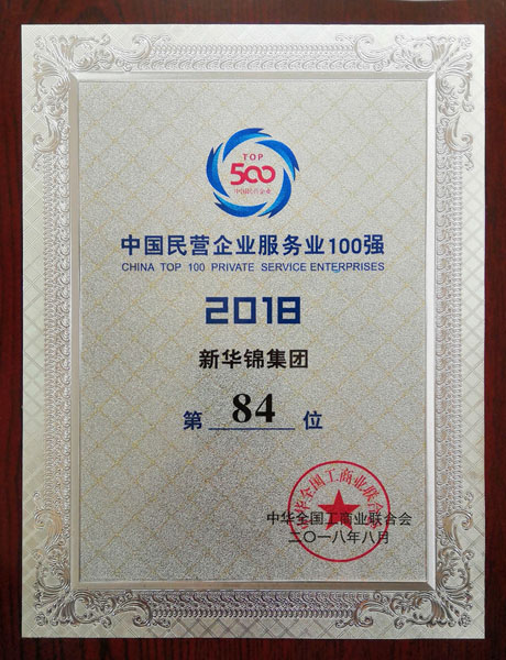 2018年中國民營企業(yè)服務(wù)業(yè)100強(qiáng)84位