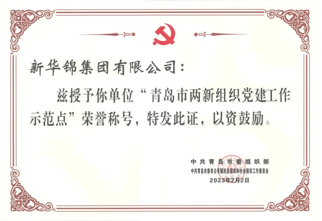 新華錦集團(tuán)黨委被授予“青島市兩新組織黨建工作示范點(diǎn)”