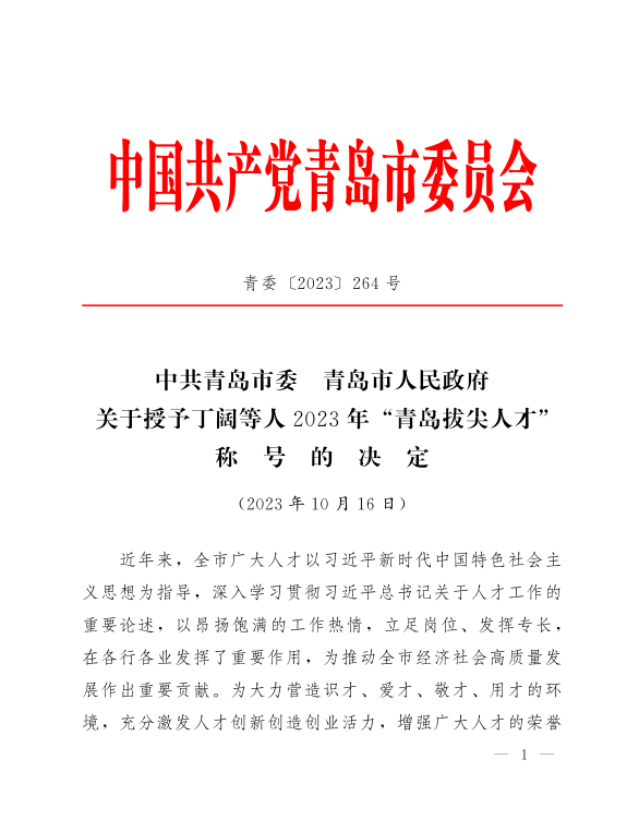 10月16日,中共青島市委、青島市人民政府印發(fā)《關(guān)于授予丁闊等人2023年“青島拔尖人才”稱(chēng)號(hào)的決定》,新華錦集團(tuán)董事、執(zhí)行總裁張航榮獲2023年度“青島拔尖人才”稱(chēng)號(hào)。