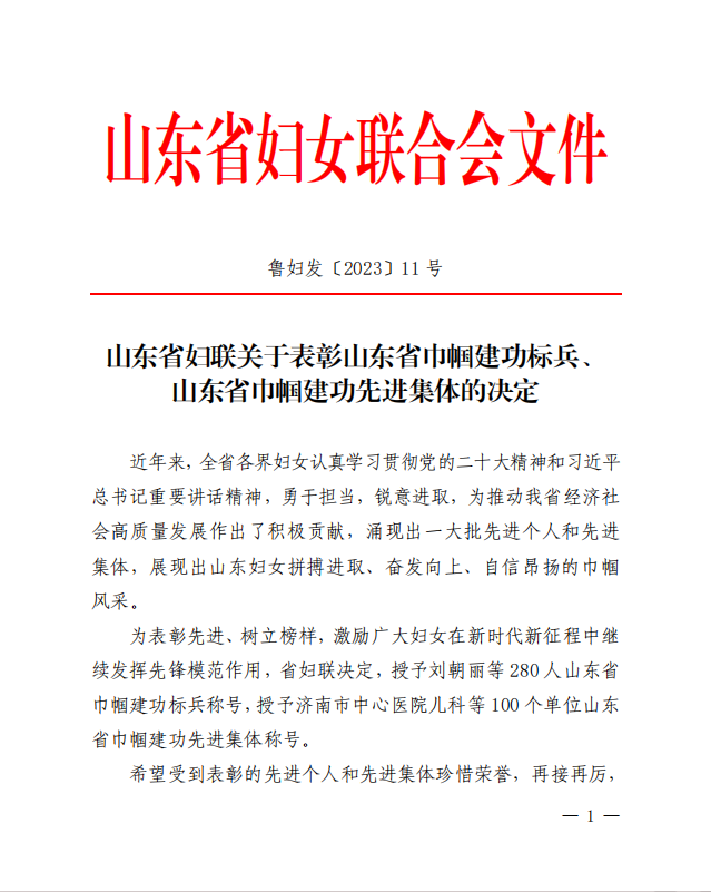 近日,山東省婦聯(lián)發(fā)布《關(guān)于表彰山東省巾幗建功標(biāo)兵、山東省巾幗建功先進(jìn)集體的決定》,授予劉朝麗等 280 人山東省巾幗建功標(biāo)兵稱號,授予濟(jì)南市中心醫(yī)院兒科等 100 個單位山東省巾幗建功先進(jìn)集體稱號。新華錦集團(tuán)董事、執(zhí)行總裁張航榮獲“山東省巾幗建功標(biāo)兵”稱號。
