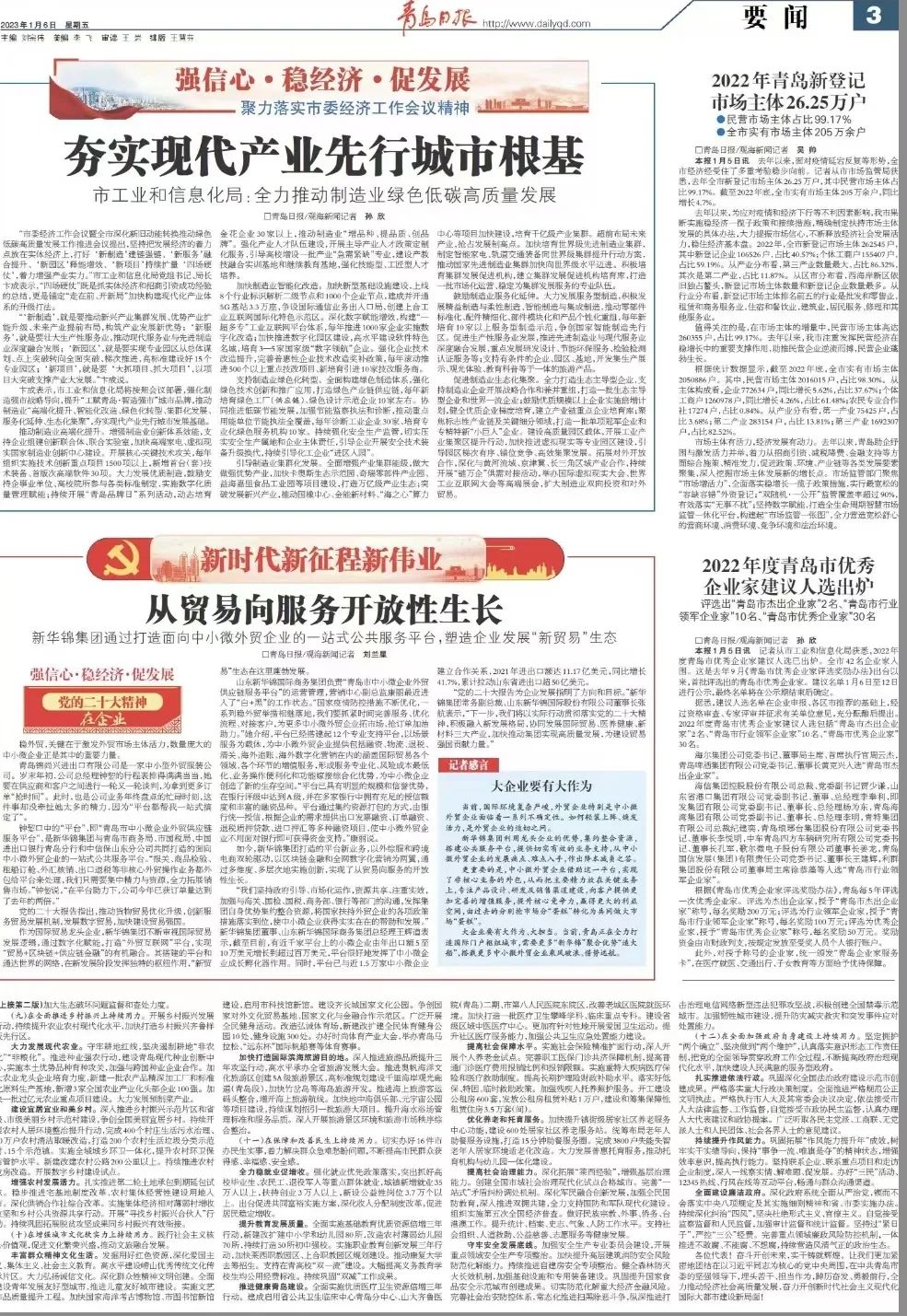 《青島日?qǐng)?bào)》丨新華錦集團(tuán):從貿(mào)易向服務(wù)開放性生長(zhǎng)