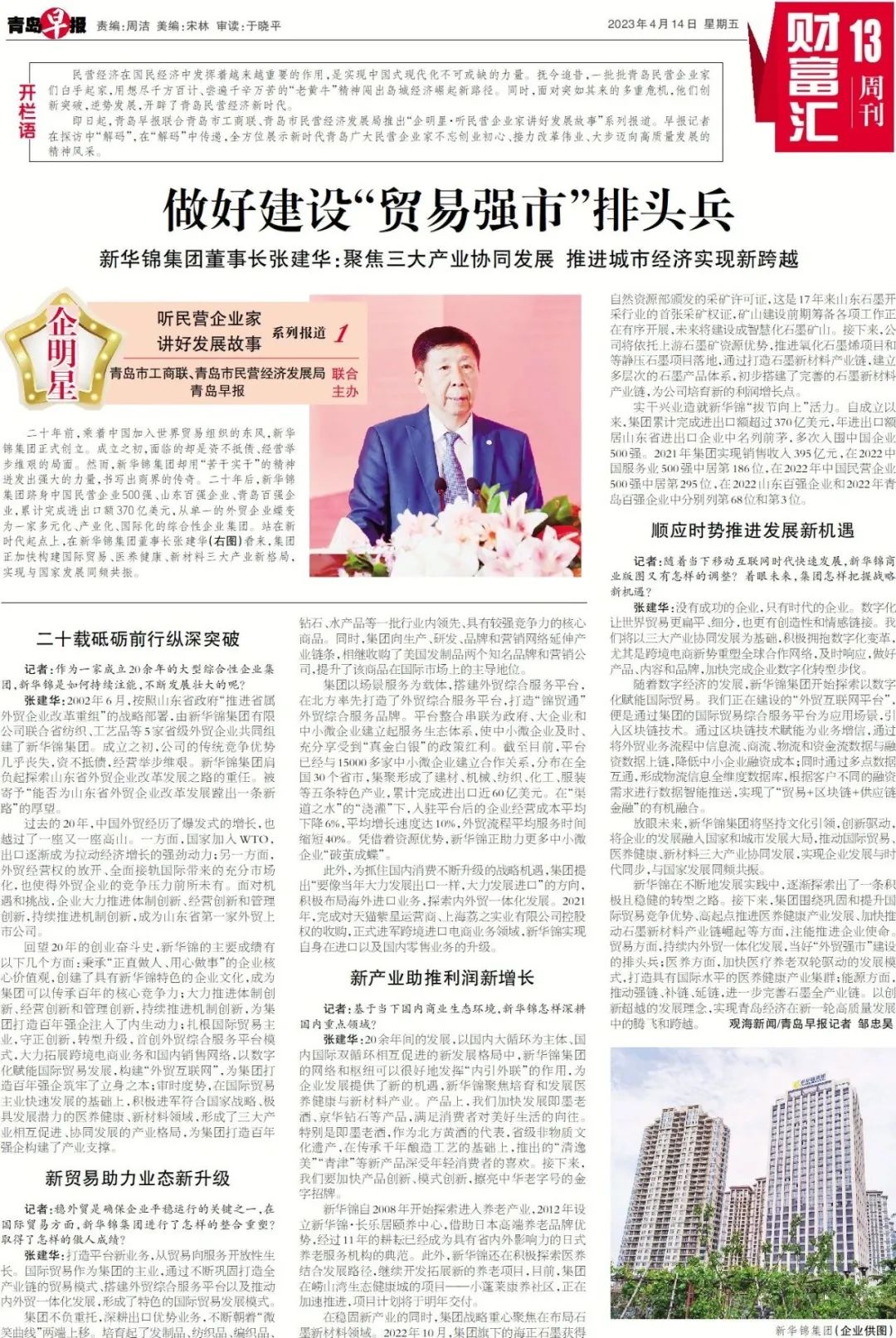 ? 聽民營企業(yè)家講好發(fā)展故事丨《青島早報》專訪新華錦集團(tuán)董事長張建華 - 媒體報道 - :: HIKING GROUP 新華錦首頁(國際貿(mào)易)(金融投資)(老年頤養(yǎng)) ::