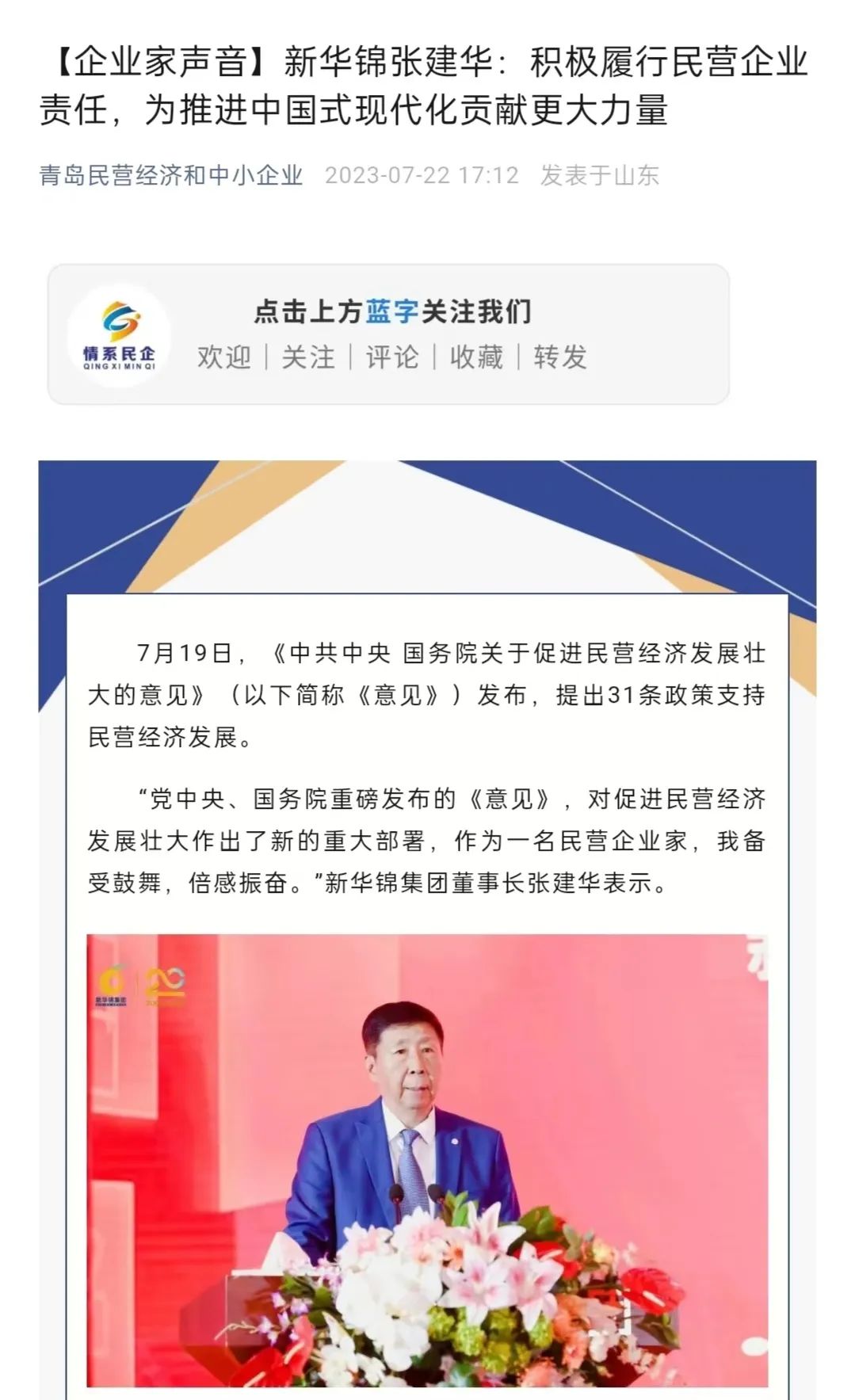 企業(yè)家聲音 新華錦張建華:積極履行民營(yíng)企業(yè)責(zé)任,為推進(jìn)中國(guó)式現(xiàn)代化貢獻(xiàn)更大力量
