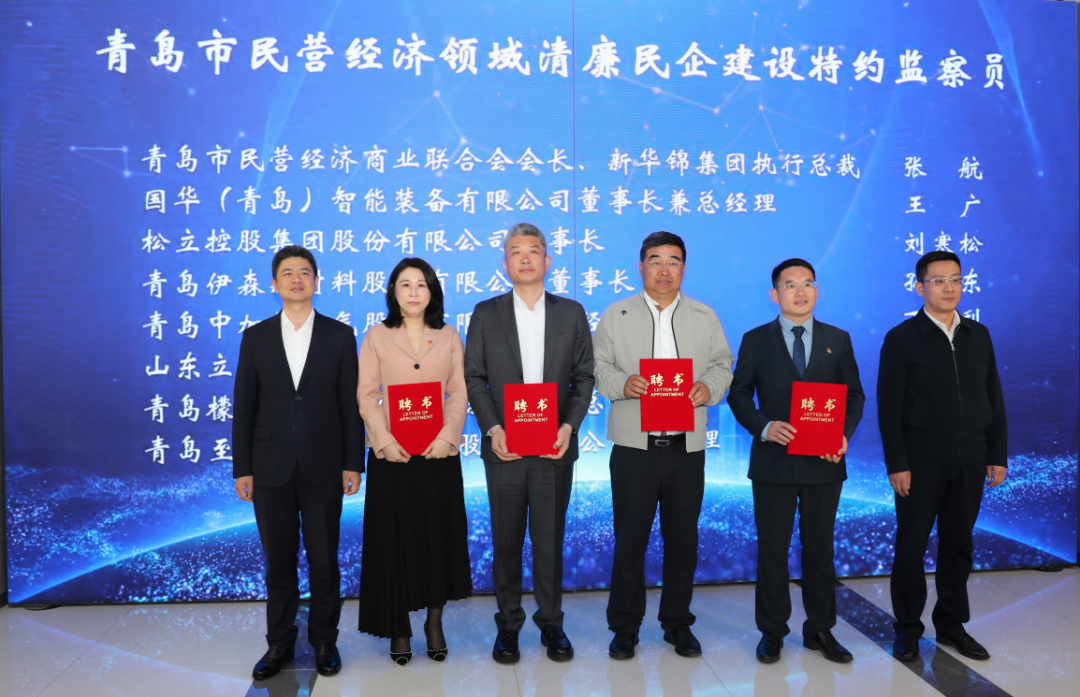 青島市民營(yíng)經(jīng)濟(jì)商業(yè)聯(lián)合會(huì)會(huì)長(zhǎng)、新華錦集團(tuán)執(zhí)行總裁張航參加儀式,代表青島市民營(yíng)經(jīng)濟(jì)商業(yè)聯(lián)合會(huì)發(fā)布《民營(yíng)企業(yè)清廉建設(shè)評(píng)價(jià)規(guī)范》團(tuán)體標(biāo)準(zhǔn),并受聘擔(dān)任青島市民營(yíng)經(jīng)濟(jì)領(lǐng)域清廉民企建設(shè)特約監(jiān)察員。